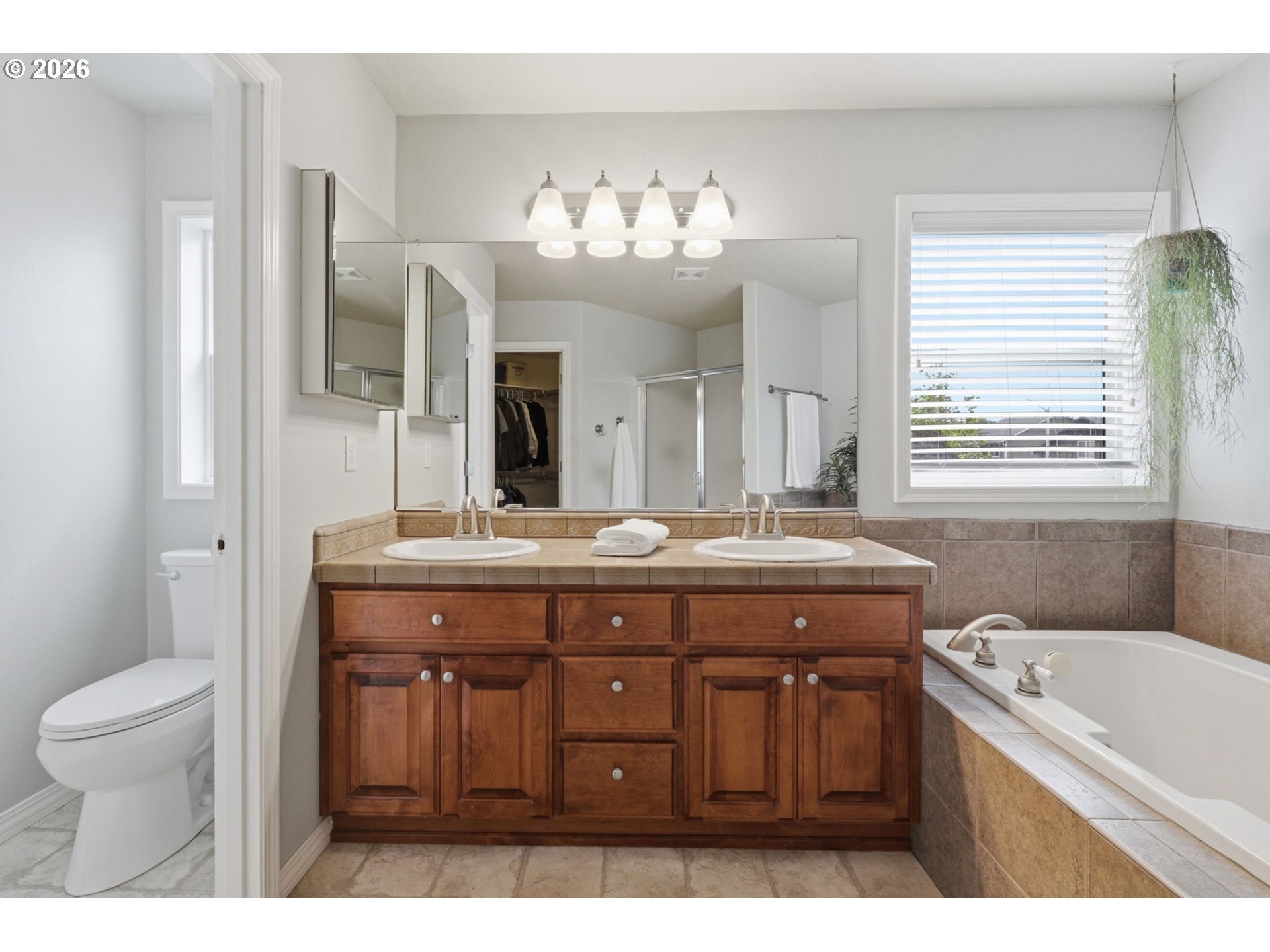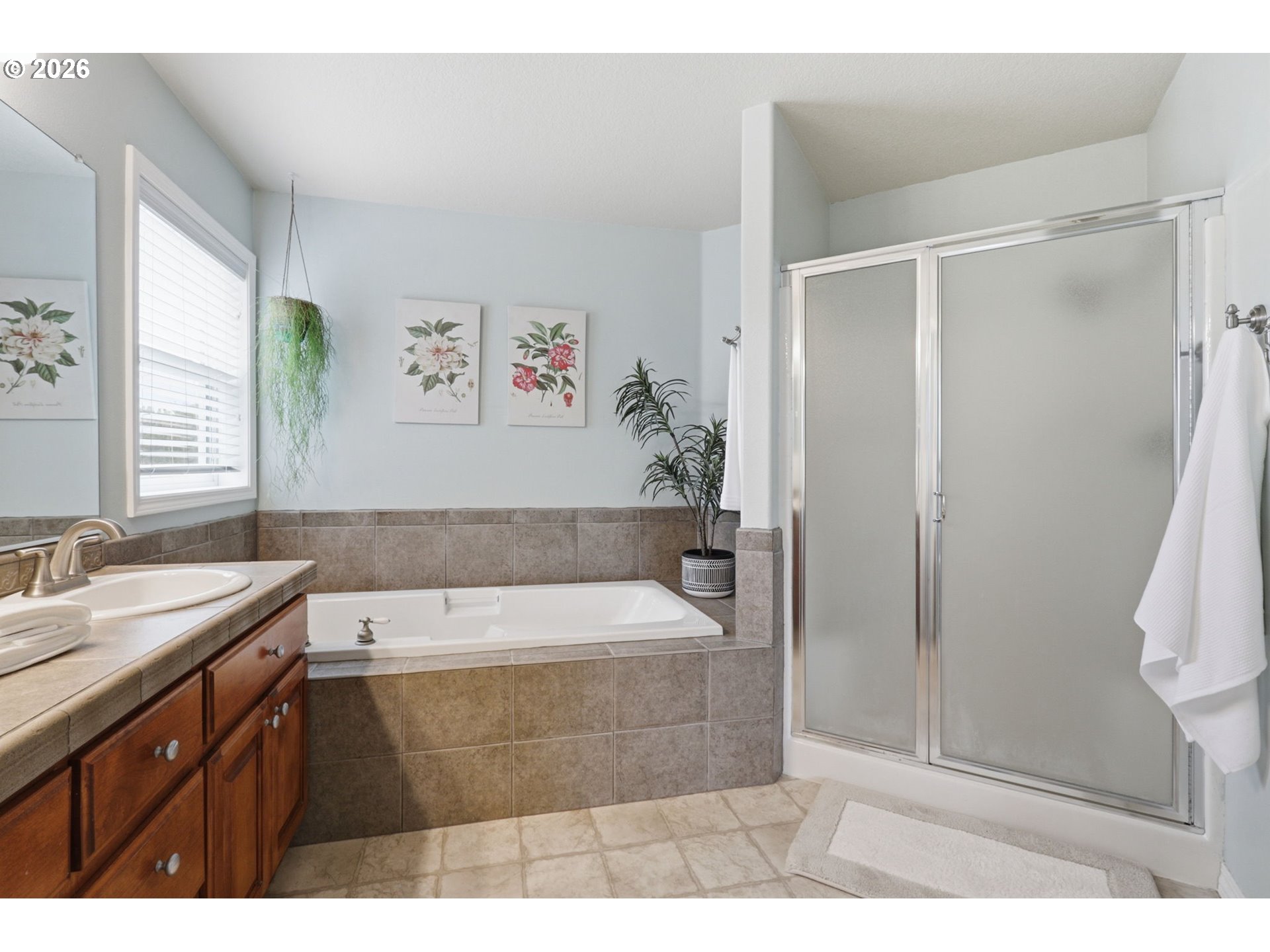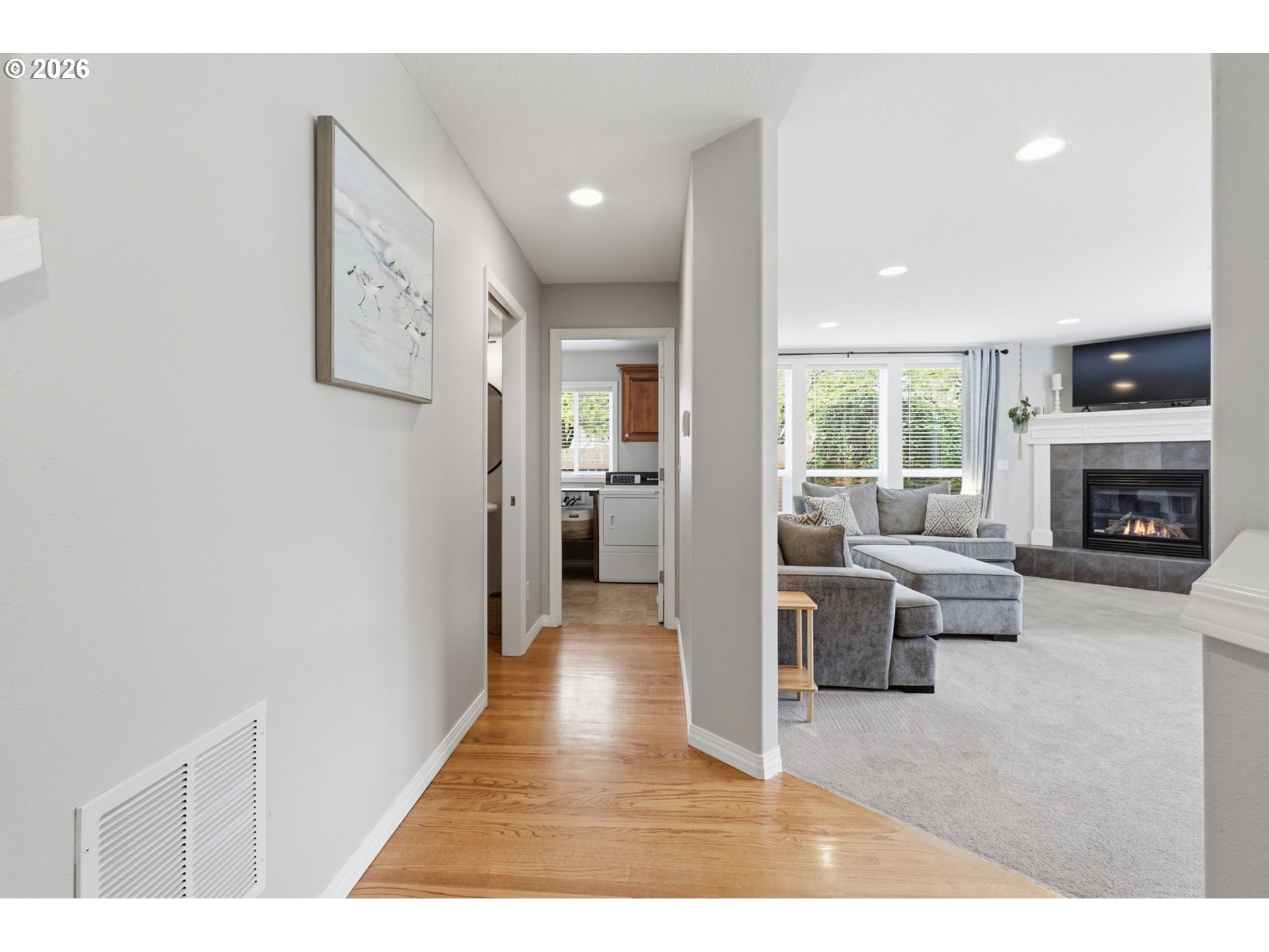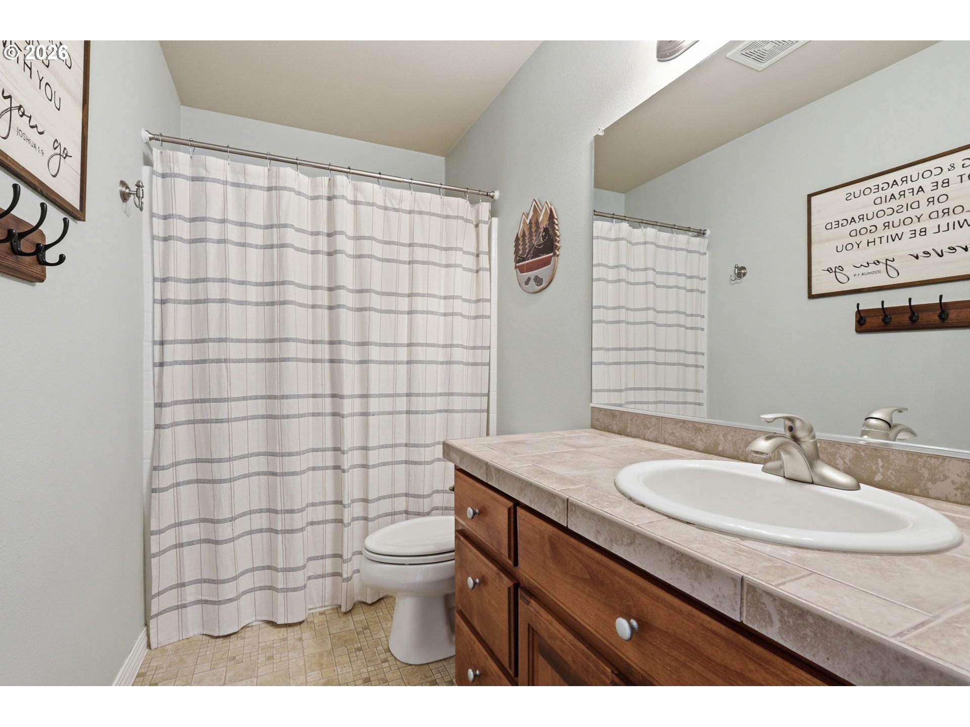 Spacious 5-bedroom + bonus room home in desirable Callista Estates! Offering 3,220 sq ft, this versatile floorplan includes a main-level bedroom and bonus room—perfect for a home office or guest space—and a large bedroom/bonus room upstairs that can function as a bedroom, media room, or playroom.The open-concept main level features hardwood floors, a cozy gas fireplace, and a functional kitchen with island, wood cabinetry, tile countertops, and a walk-in pantry. Upstairs, the generous primary suite includes a walk-in closet and ensuite bath with large soaking tub.Enjoy outdoor living in the fully fenced, flat backyard with patio, mature landscaping, raised garden beds, and a peaceful fountain—ideal for entertaining or relaxing.Situated on a 7,954 sq ft lot with a 2-car garage and extended driveway for ample parking. Solar panels help subsidize monthly power costs. Conveniently located near Chehalem Valley Middle School and Antonia Crater Elementary, parks, and all that Newberg has to offer.Move-in ready and perfect for move-up buyers seeking space, flexibility, and comfort in a well-established neighborhood.