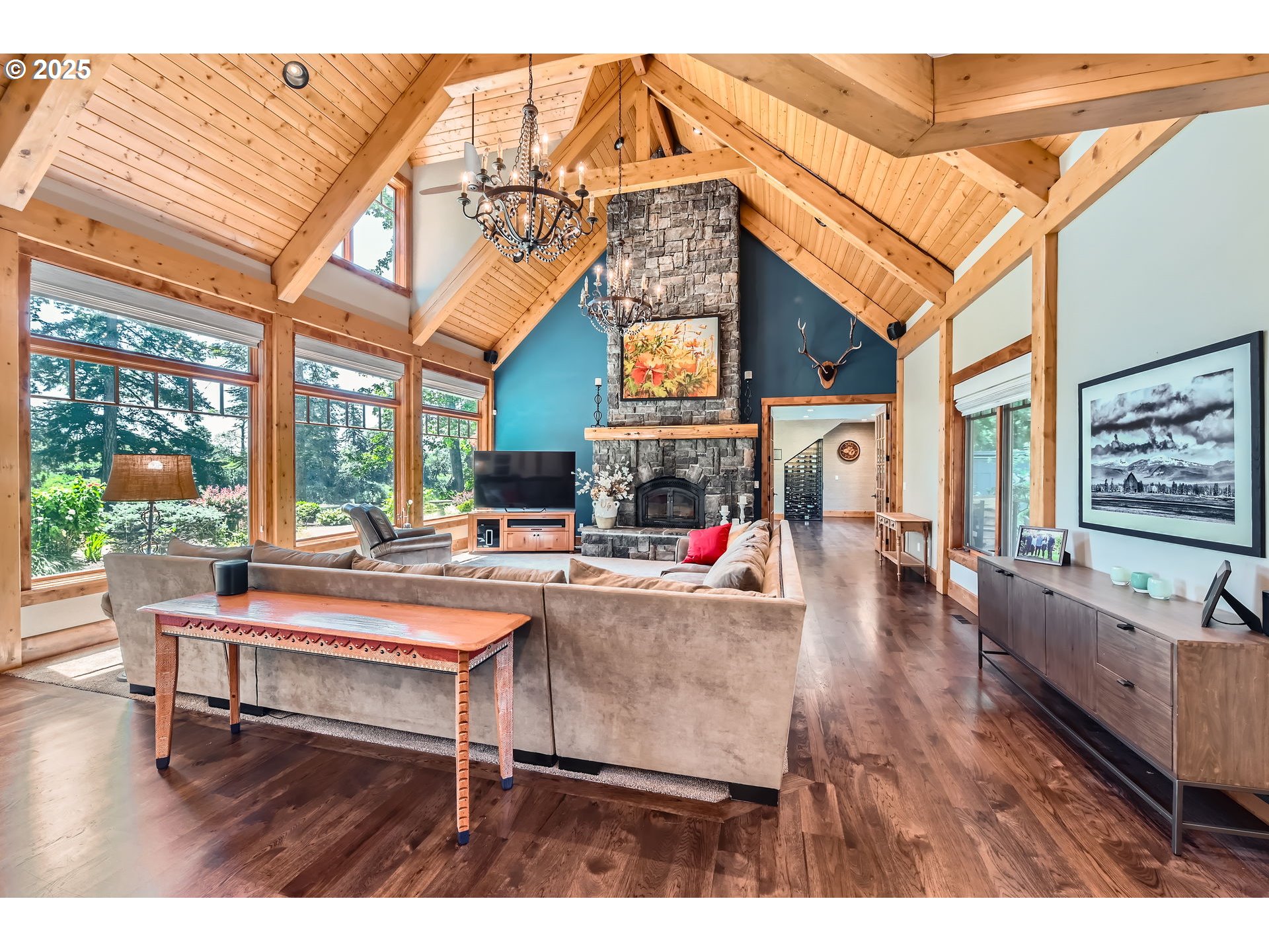 Riverfront living at its finest right at the gateway to Oregon's wine country. This extravagant home features ample room to entertain with a full bar inside and a covered outdoor kitchen on the massive patio. Enjoy peaceful river views across from Champoeg State Park and a 2 level dock, or challenge your family and friends on the pickleball court in the barn. Utilize 4 bedrooms including two primary suites and a junior suite, towering ceilings, a 250 bottle temperature-controlled wine cooler, and breathtaking views from nearly every room. The gourmet kitchen is equipped with a built-in coffee maker, Sub-Zero refrigerator, Miele Combi-Steam oven, Viking cooktop, granite and marble counters, warming drawers, and more. This home and its many jaw-dropping features must be seen in person, schedule a showing today!