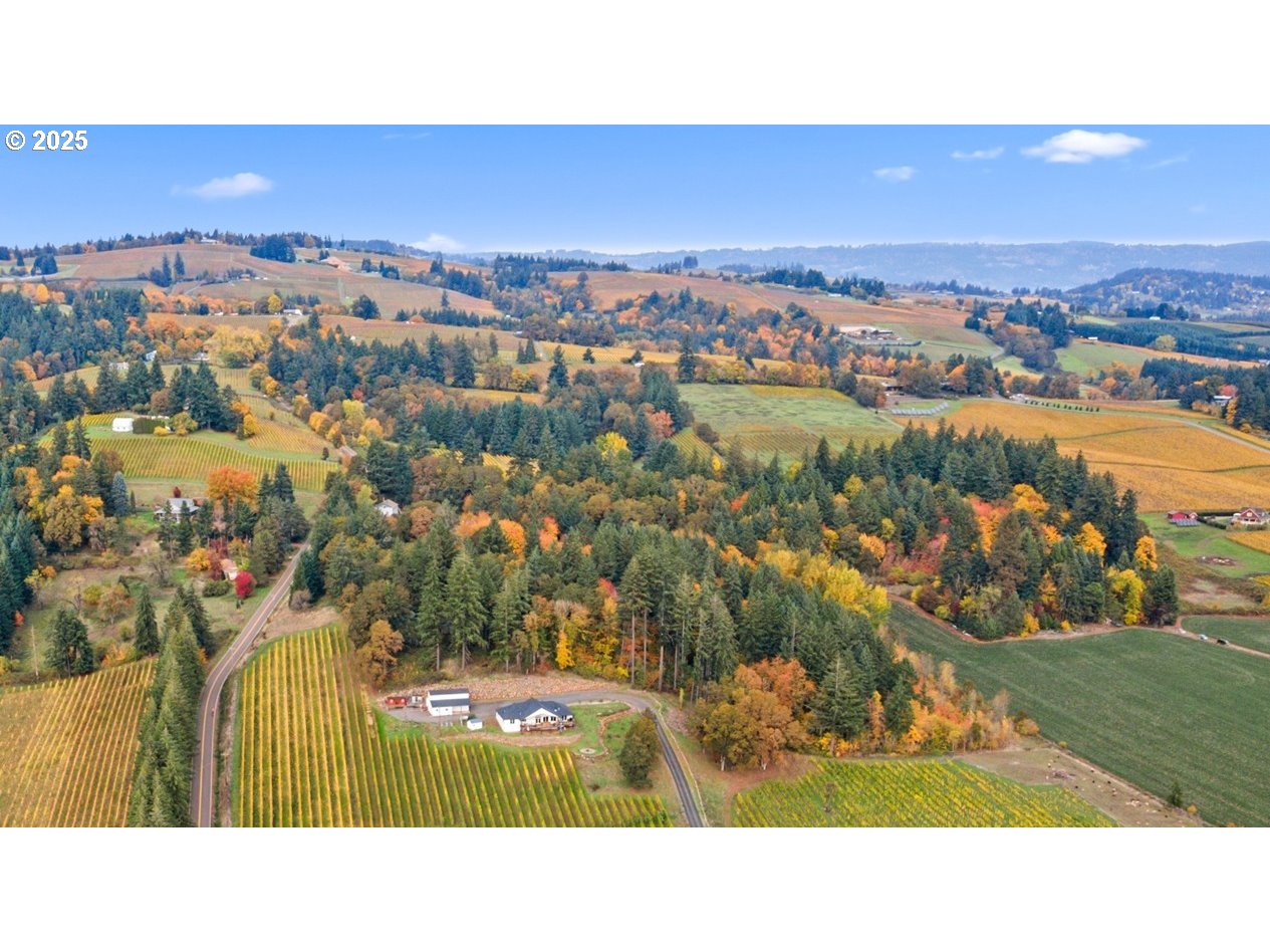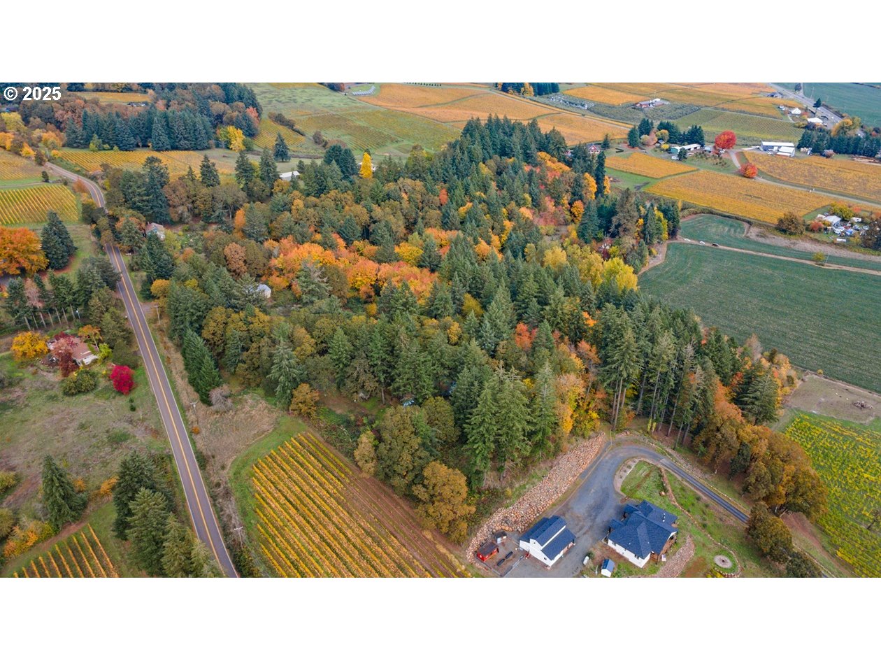 Looking for a private, unique, nature-rich setting, surrounded by rolling hills and vineyards, in the very heart of wine country? Inhale the scent of stately trees while strolling this sylvan, park-like estate. Offering a rare chance to acquire a coveted address, the property is located in the famous Dundee Hills AVA, south of Dundee, minutes to McMinnville, Carlton & Newberg. Enjoy quick access to Hwy99w & Hwy18, easily connecting to Portland, Salem & the Oregon Coast. >>Lots of infrastructure is already here: good well, newer septic, six out-buildings (including an oversized, high-door 2-bay shop, a 5-bay machine shed with office, a critter barn & a chicken coop), fenced-in equipment yard, double power meter drops, plentiful paved parking & winding driveways, and a 3,100+ sf 'blank slate' residence, ready for your custom touches. Recent repairs include a 2020 Heat Pump/Air Handler, 2006 Electrical & mechanical repair, and 2011 Septic System major repair. >>This mid-century modern floorplan could really pop with a bold remodel. The solid structure might also make an exotic tasting room or bed & breakfast*, with large gathering spaces, two kitchens, two decks and an 'infinity view' patio area overlooking south facing valley & vineyard views. Alternative, private building sites are also available on this sprawling wooded acreage. House is currently tenant-occupied; inside showings will be limited to pre-qualified buyers only. Please don't enter the property without an appointment. *Buyer to do all due diligence to support the intended use. Ask your broker to send you the details including maps, floorplan & developer's packet available with this listing. >>Finally, take a drive along Breyman Orchards Road and soak in the rolling countryside, passing along the way world-renown destinations including Remy Wines, Durant Vineyards & Olive Mill, White Rose Estate, De Ponte Cellars, Resonance Dundee Hills, Domain Drouhin & Domaine Serene. What a magical, wonderful location!