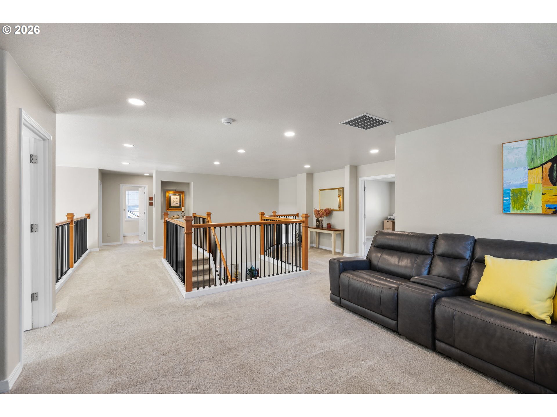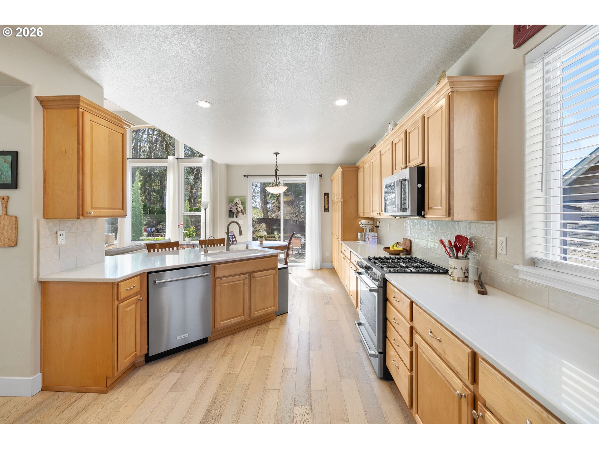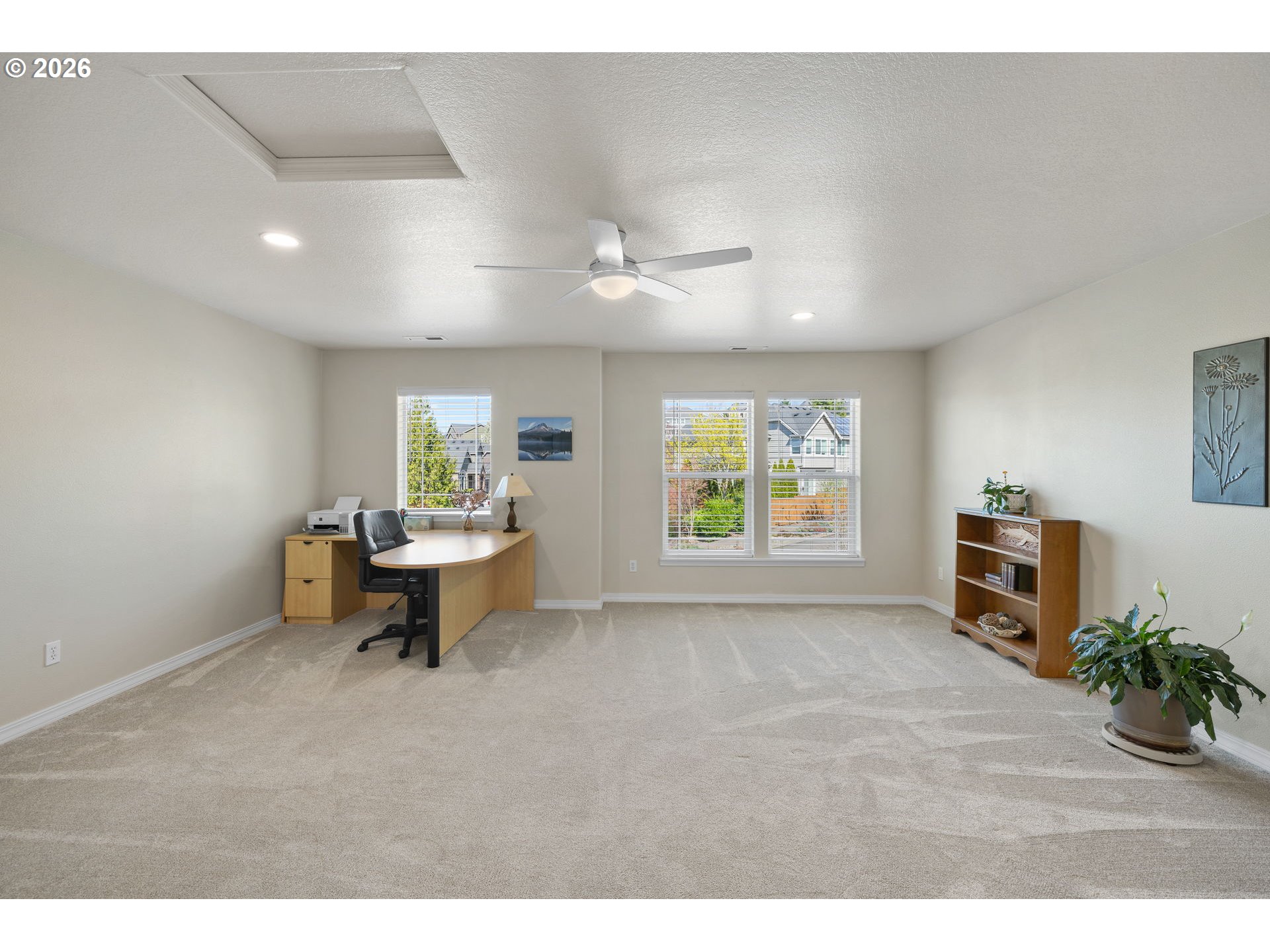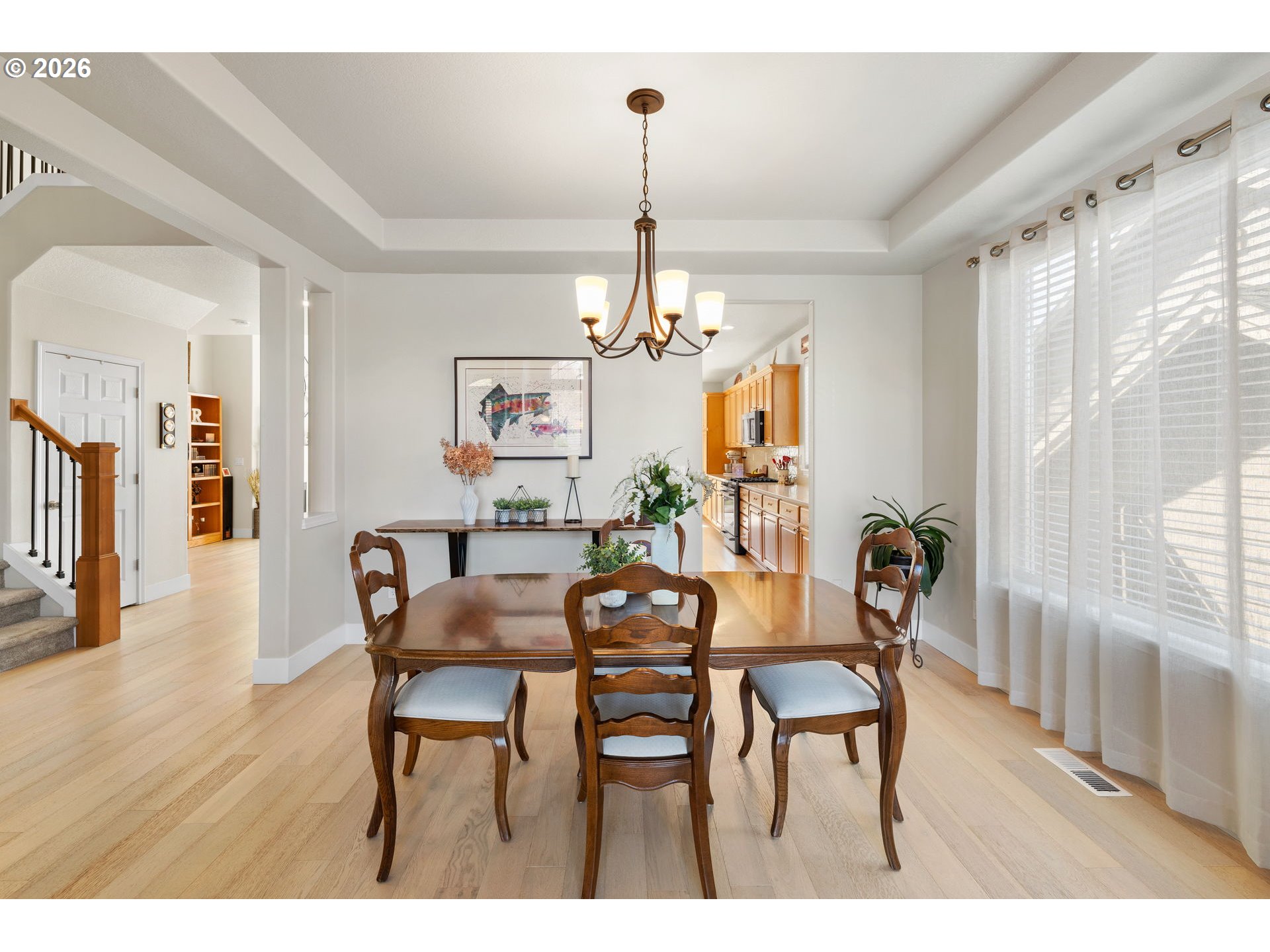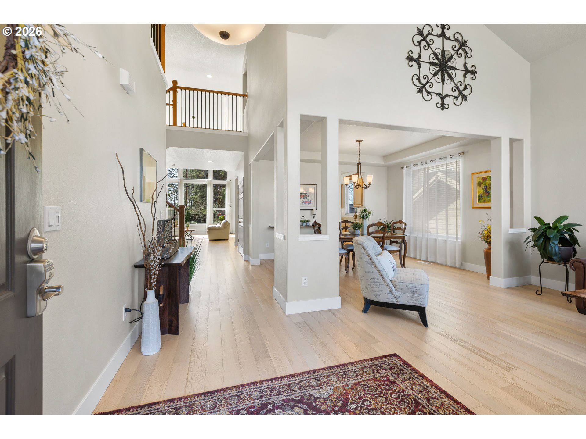Light & bright with wall of windows, soaring ceiling & warm natural light throughout. All essential living spaces on the main, plus fantastic space upstairs, 3 car garage & incredible outdoor living. This home is a 10! Located in highly desirable "The Greens" neighborhood, the home blends comfort, functionality & outdoor living. The layout supports everyday convenience & long-term flexibility. The level extended driveway maximizes the 3-car garage versatility — perfect for vehicles, hobbies, or shop/workspace. The walk-out backyard is beautifully landscaped providing your own private oasis. Mature fruit trees & berry bushes offer seasonal harvests, the water feature adds ambiance, and the built-in firepit is perfect for gatherings or quiet evenings making memories. Major systems have been updated, offering peace of mind for years to come: New 50 year roof (2024), new HVAC system (2023), crawl space refresh (2025). A rare opportunity in a sought-after location — this home truly delivers on lifestyle, comfort & value. Make sure to download the features sheet & watch the 2 minute video