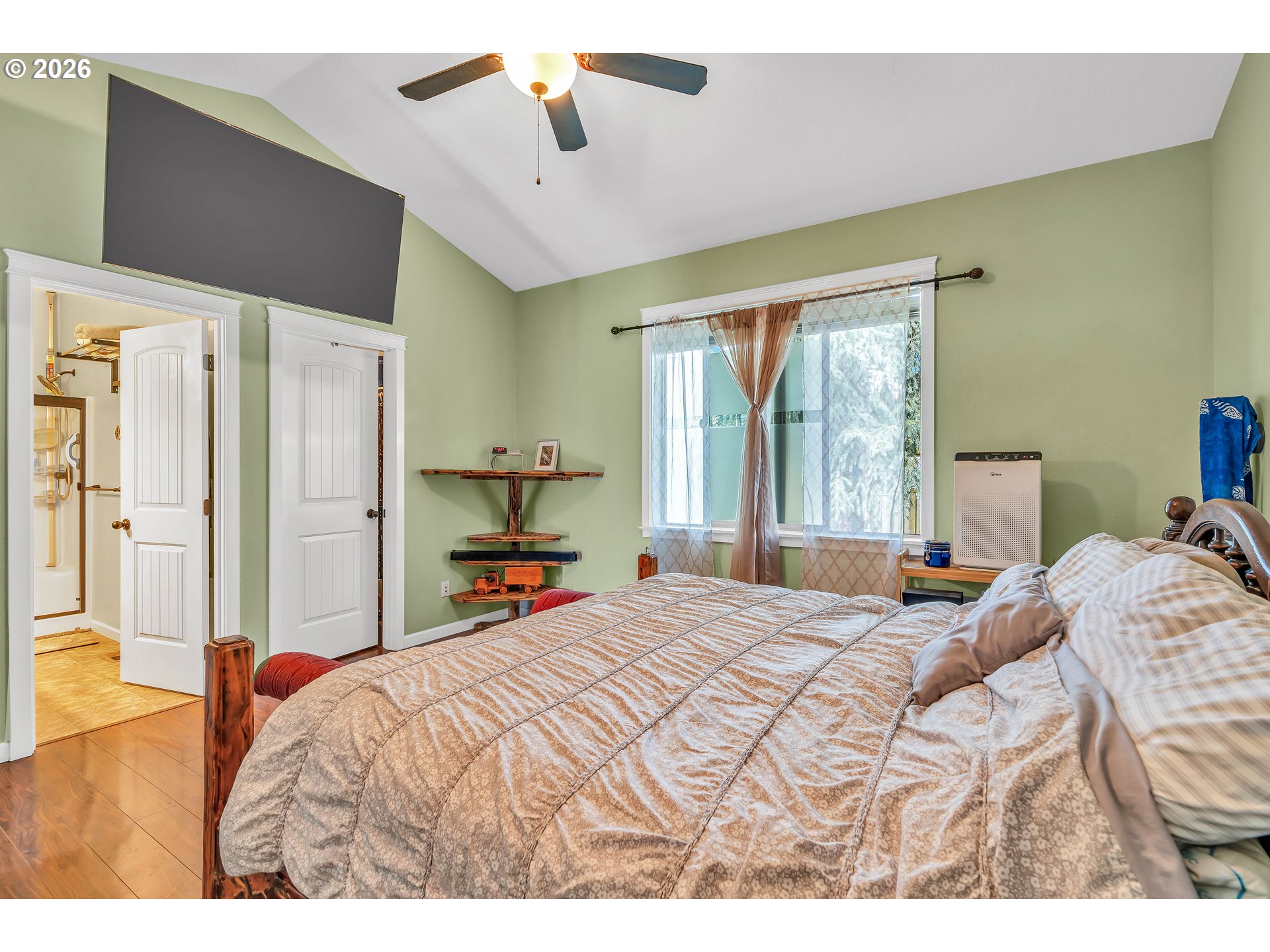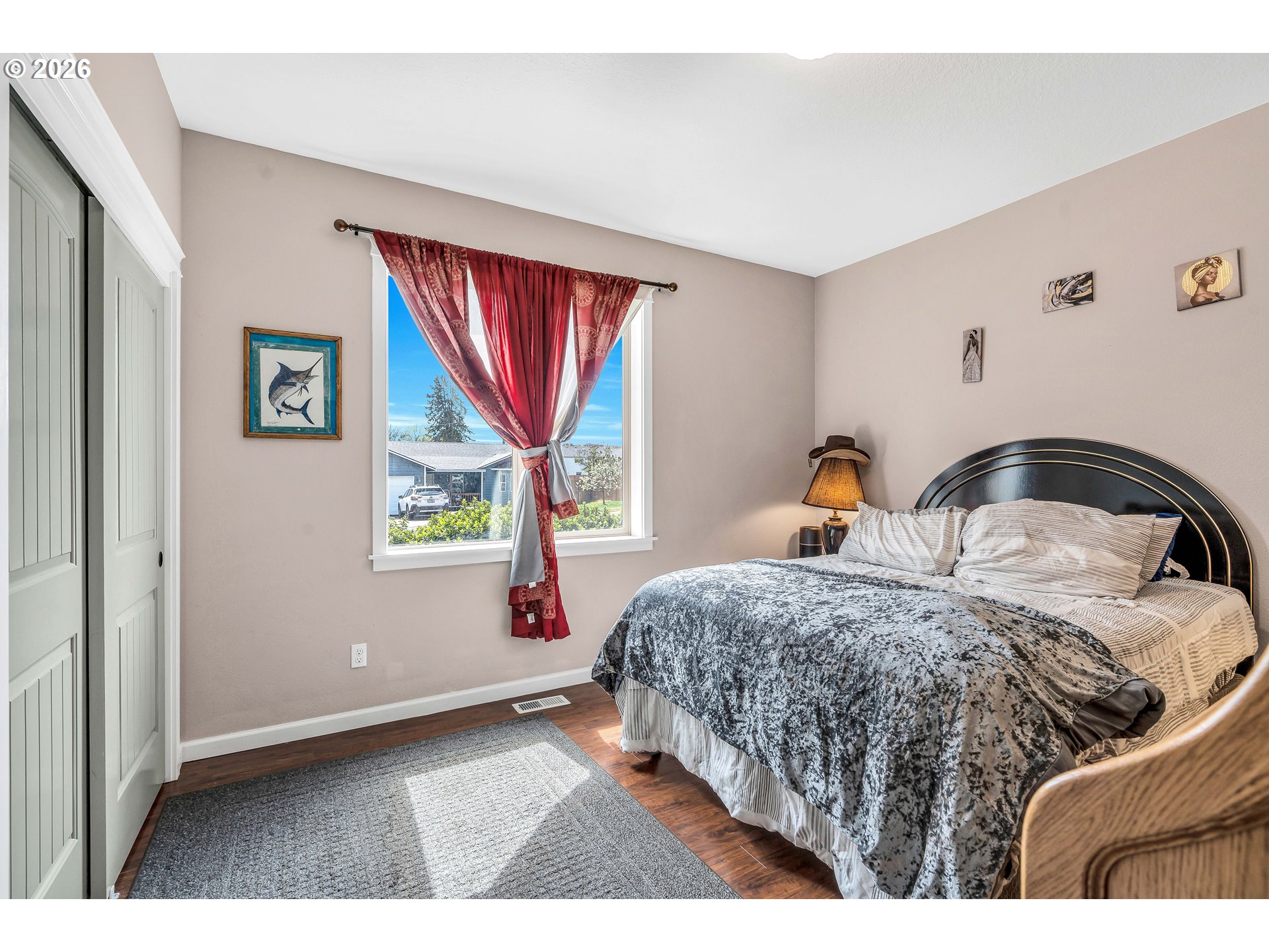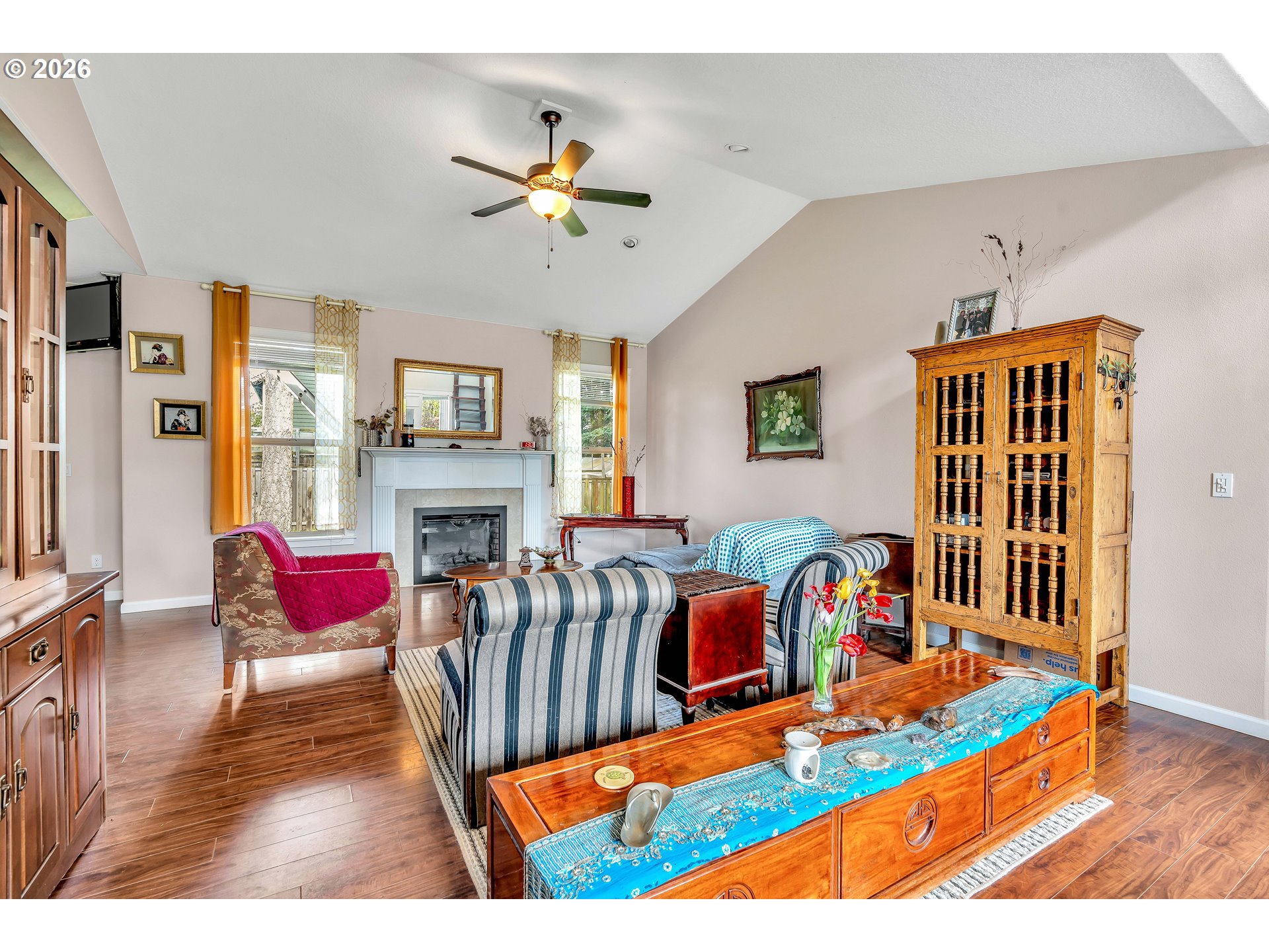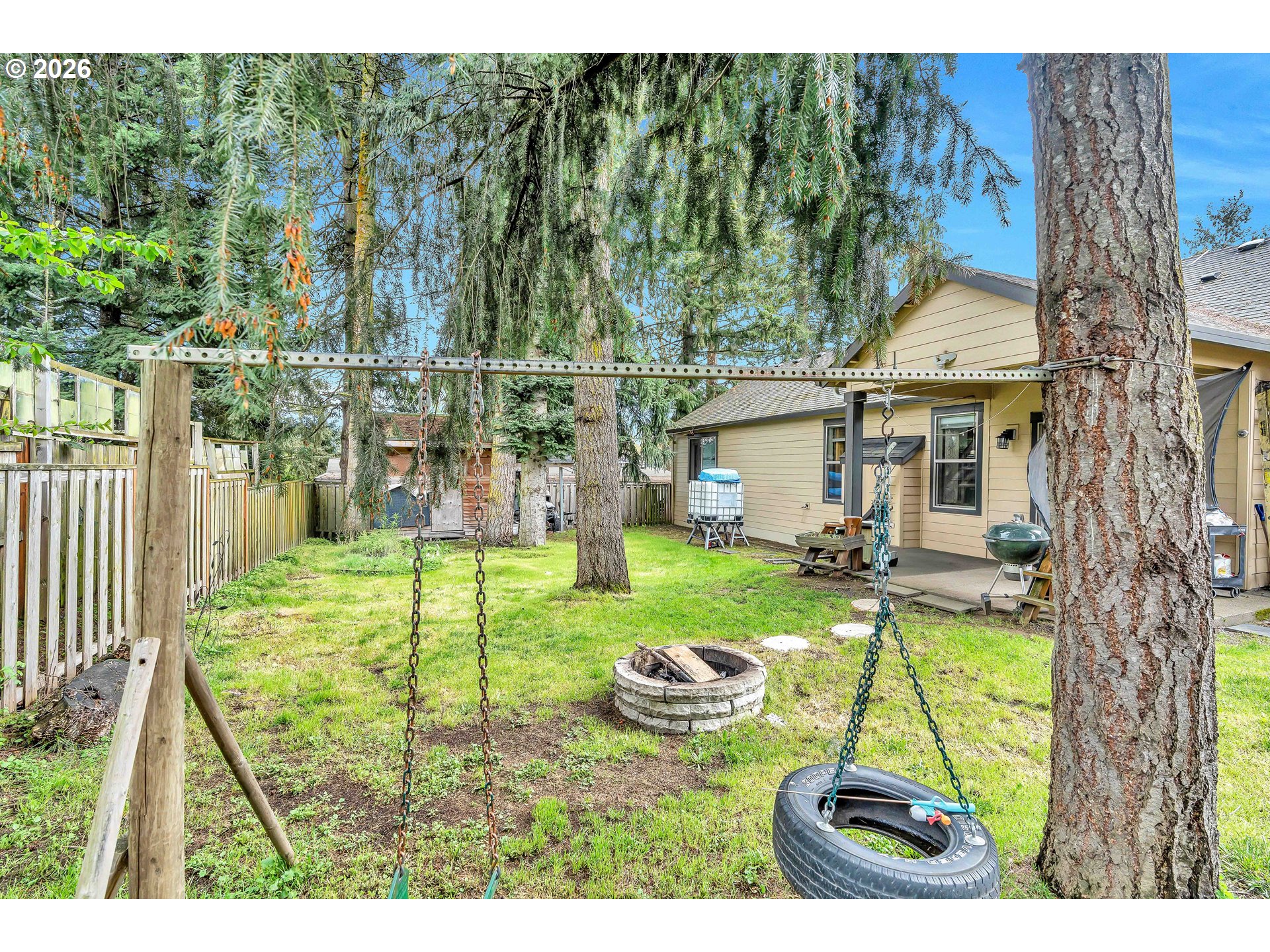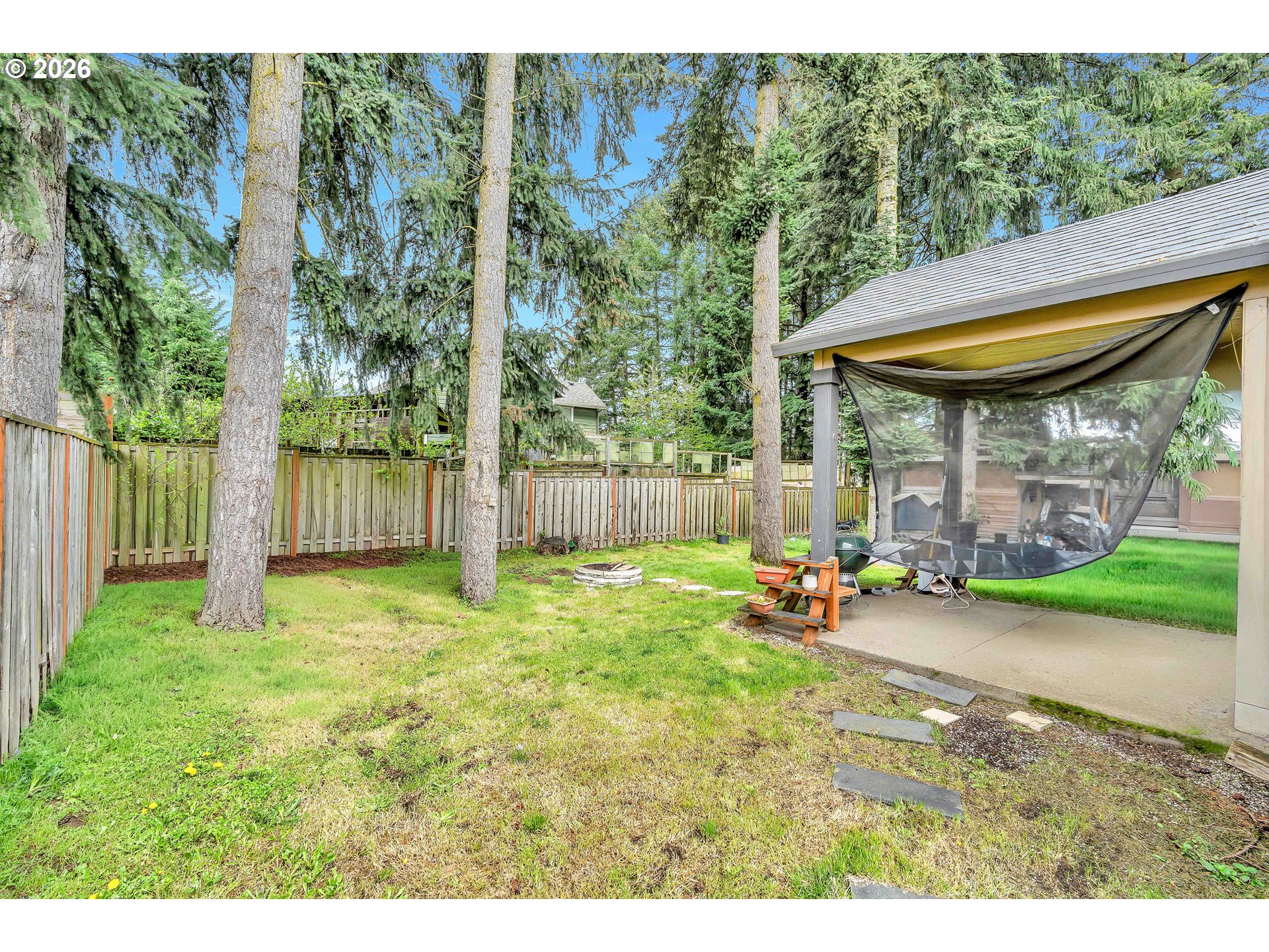 Welcome to this charming single-level home nestled in the heart of Yamhill, where small-town warmth meets the beauty of Oregon wine country. Full of character and thoughtful design, this home offers a bright, inviting layout with hardwood floors flowing through the living and dining areas, creating a warm and timeless feel.The spacious living room is a true centerpiece, featuring soaring vaulted ceilings, abundant natural light, and a cozy fireplace that makes the space feel both open and comfortable. The dining area is perfectly positioned with sliding doors that lead to the backyard, creating an effortless indoor-outdoor connection—ideal for entertaining or enjoying quiet evenings at home.The primary suite continues the airy feel with its own vaulted ceilings and ceiling fan, along with a private ensuite bathroom complete with double sinks and a walk-in shower.Step outside to a generously sized, fully fenced yard shaded by mature, beautiful trees—offering privacy, space to play or garden, and a peaceful setting to unwind. A covered patio extends your living space outdoors, making it easy to enjoy the outdoors year-round.Located in a quiet, welcoming community known for its rolling farmland and proximity to renowned vineyards, this home offers the perfect balance of tranquility and convenience—all just a short drive to the charm of downtown Yamhill and surrounding wine country destinations.A rare opportunity to own a home that blends comfort, character, and the relaxed lifestyle of Oregon’s countryside.