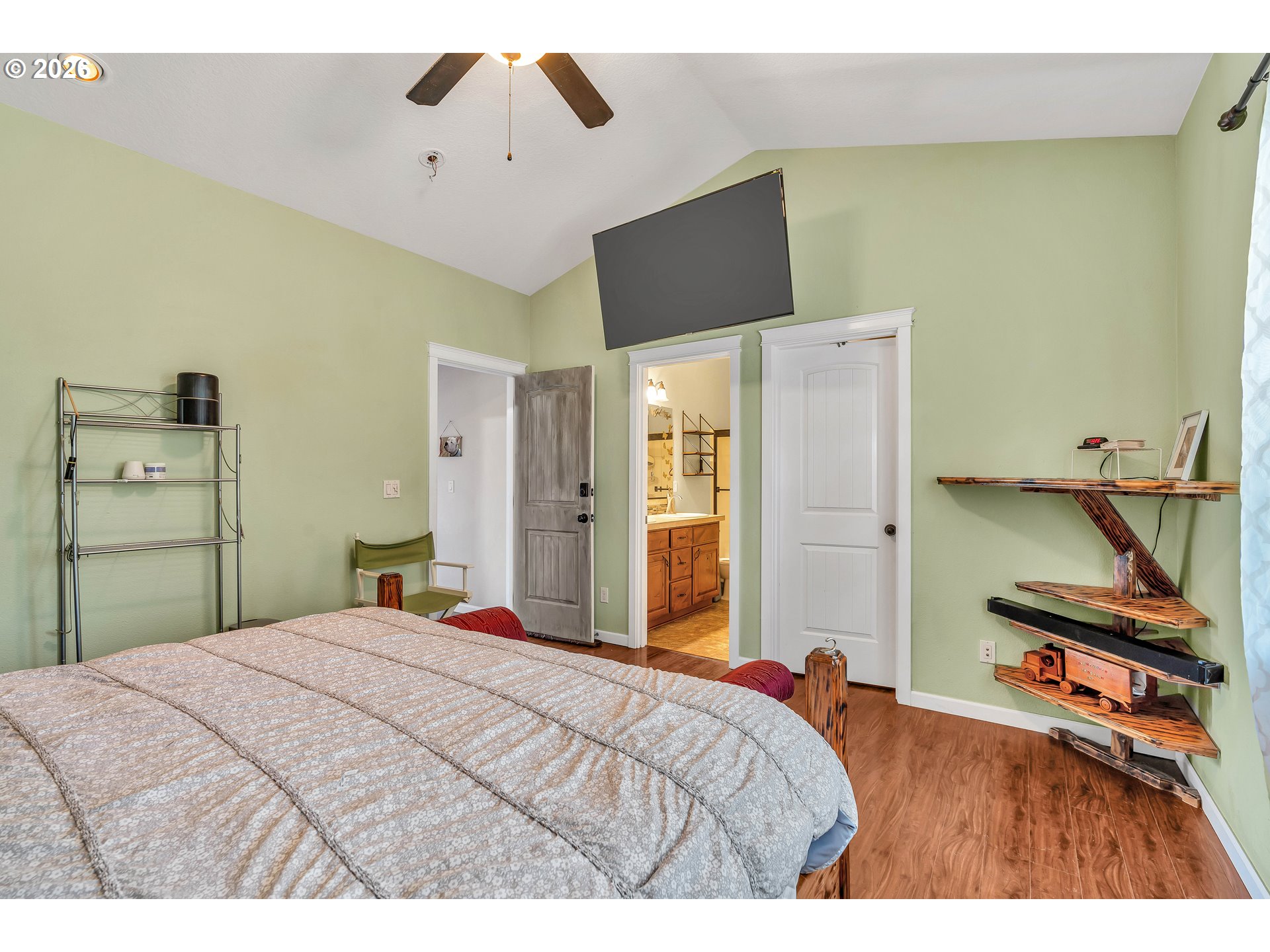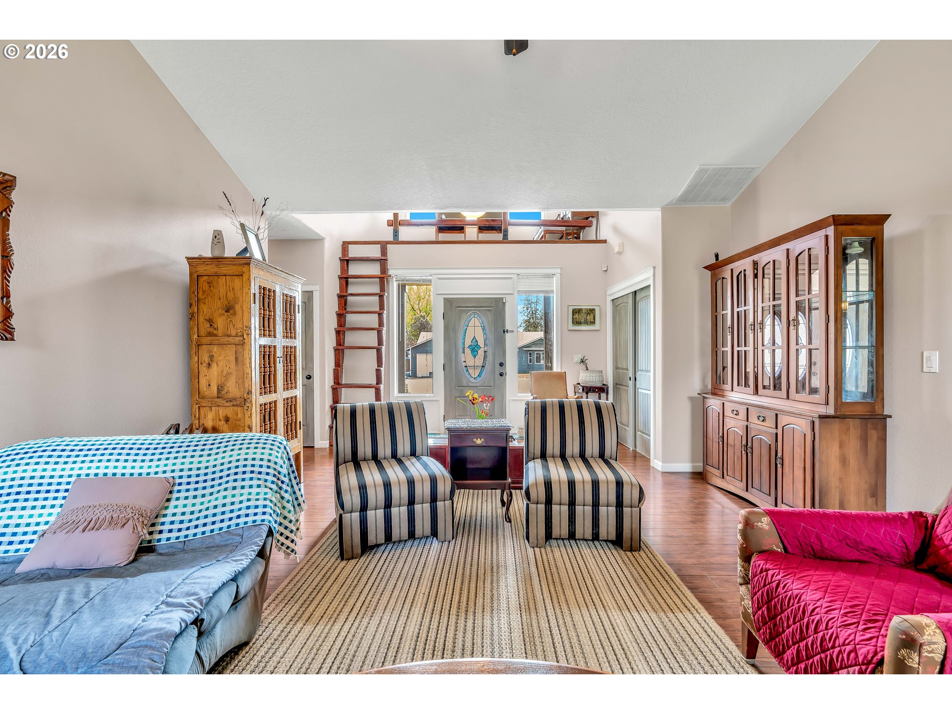 CeilingFan, HardwoodFloors, HighCeilings, LaminateFlooring, Laundry, VaultedCeiling, WoodFloors