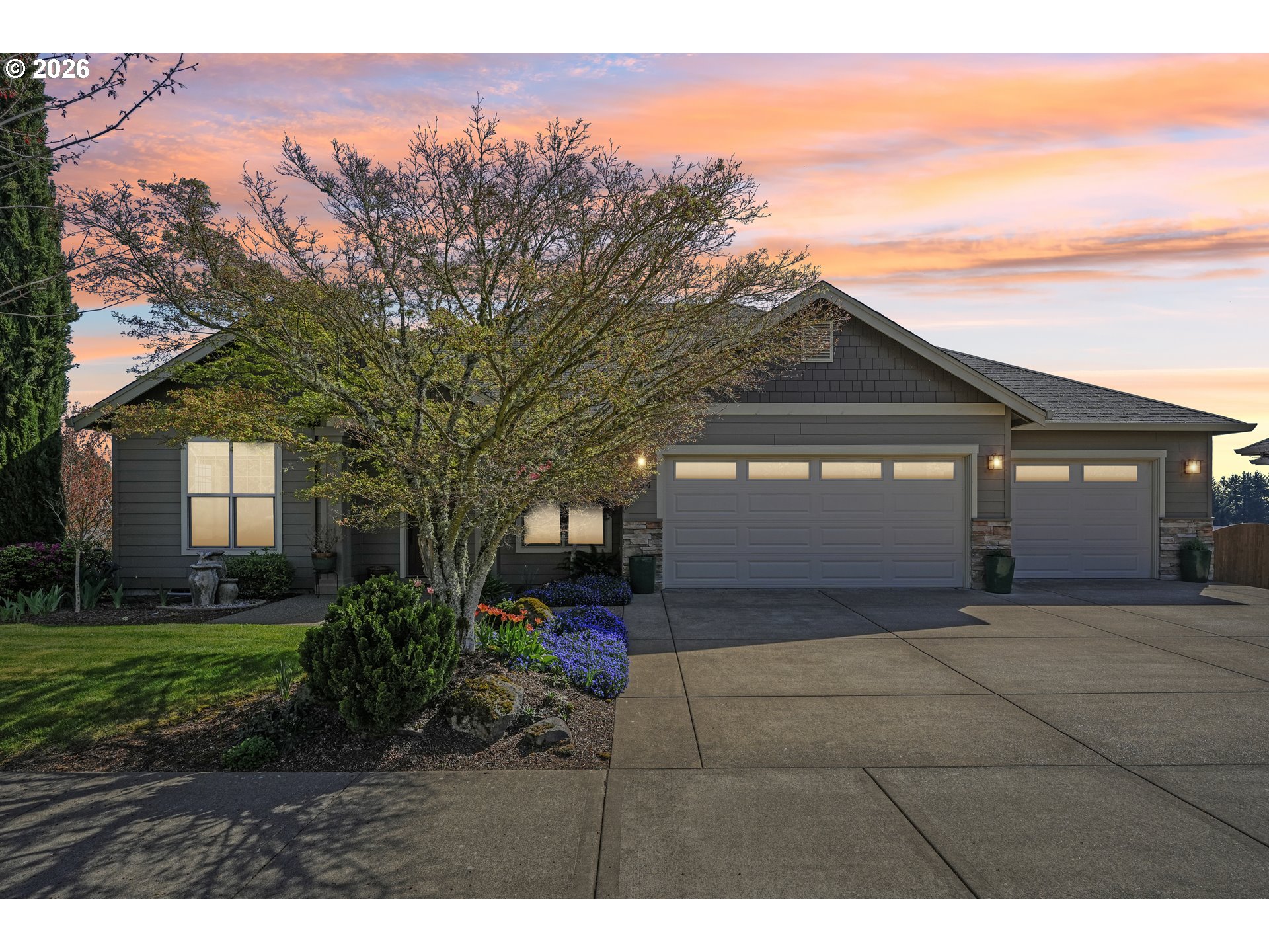 Beautiful, well-kept home in one of McMinnville’s most desirable neighborhoods! This thoughtfully designed residence offers a primary suite on the main level, complete with an extra-large jetted soaking tub, walk-in shower, and spacious walk-in closet. The open-concept living area features stainless steel appliances, a built-in wine rack, and abundant natural light—perfect for both everyday living and entertaining. Enjoy premium outdoor living with covered, top-of-the-line Trex decking accented by Ipe wood and sleek stainless steel railings—ideal for taking in the stunning views of Mt. Hood and Mt. Jefferson. A decorative water feature welcomes you at the main entrance, while the waterproof covered patio below provides additional year-round entertaining space. The outdoor area also includes a 10x12 shed for added storage. This home is equipped for comfort and efficiency with dual zone heat pump, two fireplaces (gas upstairs, pellet downstairs), two water heaters, LiftMaster side-mount garage door openers, and an exterior generator plug. The garage features newer custom made insulated roll-up doors (R-11), is fully insulated, and includes HVAC vents. The property has been meticulously maintained with regular 6-month HVAC servicing and quarterly pest control as part of a long-term preventative maintenance program. Ample storage throughout adds to the home’s functionality. Ideally located near neighborhood parks and scenic walking trails, this home offers easy access to outdoor recreation while being just minutes from McMinnville’s charming downtown, local shops, and dining. Mortgage savings may be available for buyers of this listing.