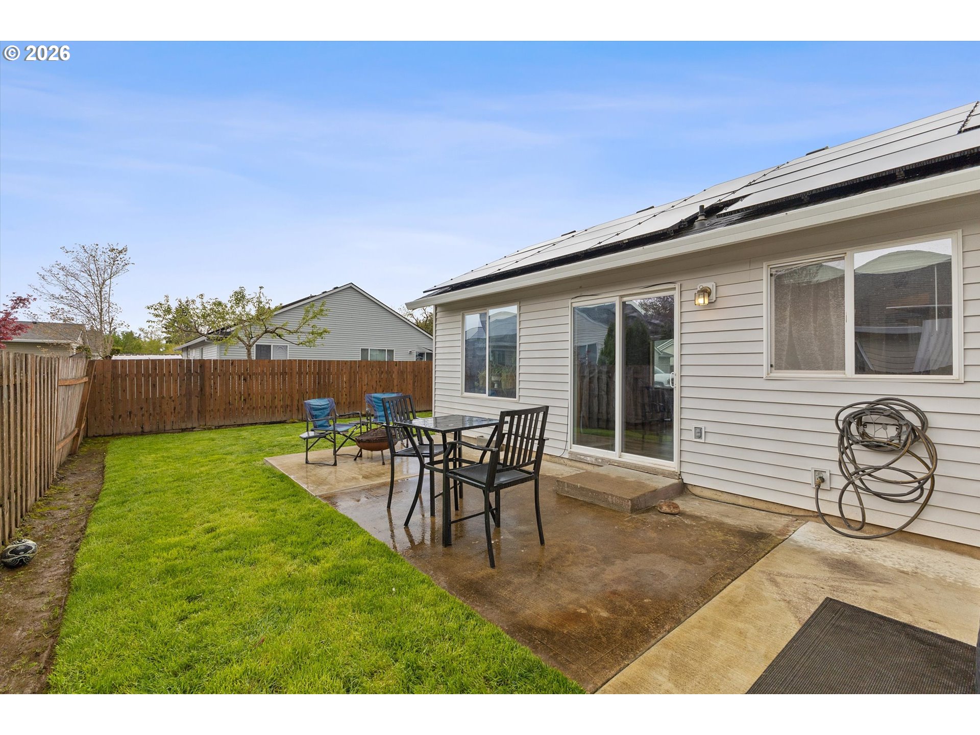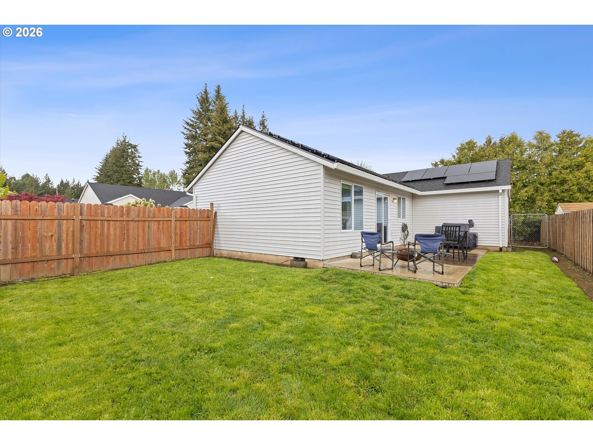 Welcome to this charming single-level home nestled in the heart of Oregon’s sought-after wine country! From the moment you arrive, the wide private driveway welcomes you with ample parking, including room for trailers, RVs, or multiple vehicles.Inside, this 3-bedroom, 2 full bathroom home offers comfort, convenience, and plenty of space both inside and out with a very well designed layout. The living spaces flow seamlessly to the outdoors through sliding glass doors, opening to an expansive patio—perfect for weekend BBQs, entertaining guests, or relaxing evenings around a firepit under the stars. The spacious primary suite offers a true retreat as you enjoy a walk-in closet, double-sink vanity, and a step-in shower for added comfort and functionality. The fully fenced backyard offers endless possibilities, with plenty of room for garden beds, play structures, or pets to roam freely. Whether you’re looking to create your dream outdoor oasis or simply enjoy the open space, this property delivers.Conveniently located just moments from local schools, parks, and everyday amenities, this home combines peaceful small-town living with easy access to everything you need.Don’t miss your opportunity to own a slice of wine country living in this inviting and versatile home!There is a FHA assumable loan at very low rate! Home has energy efficient solar panels installed in 2023. New roof and heat pump in 2017. New base molding and interior paint in 2026. So much parking!