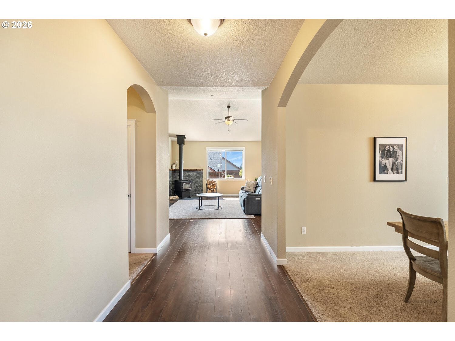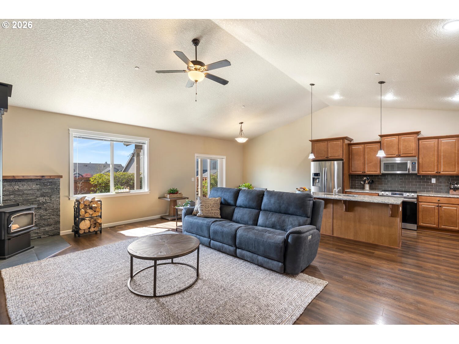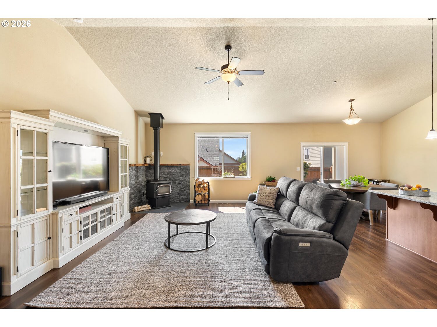 There’s something straightforward about a well-designed single-level home. Movement is easy, spaces connect naturally, and daily life doesn’t require much thought or adjustment. Open kitchen and family room sit under vaulted ceilings, giving a sense of volume while keeping everything connected. It’s open without feeling oversized, and functional without feeling tight. Outside of the living space, the property offers a different kind of flexibility. A 3-car garage plus 12 foot gate span side access (with 30 AMP) creates room for the things that don’t always fit neatly—RVs, vans, trailers, or simply extra space to spread out. Original driveway extended 15 X 50. With owned solar and new exterior paint, the focus shifts away from maintenance and toward long-term usability. New freestanding wood stove, a ductless HVAC system for the garage & new Bryant Evolution Fan coil & 20 SEER Heat Pump. It’s a home that supports how people actually live— simple to navigate, adaptable, and built to handle both routine and change.