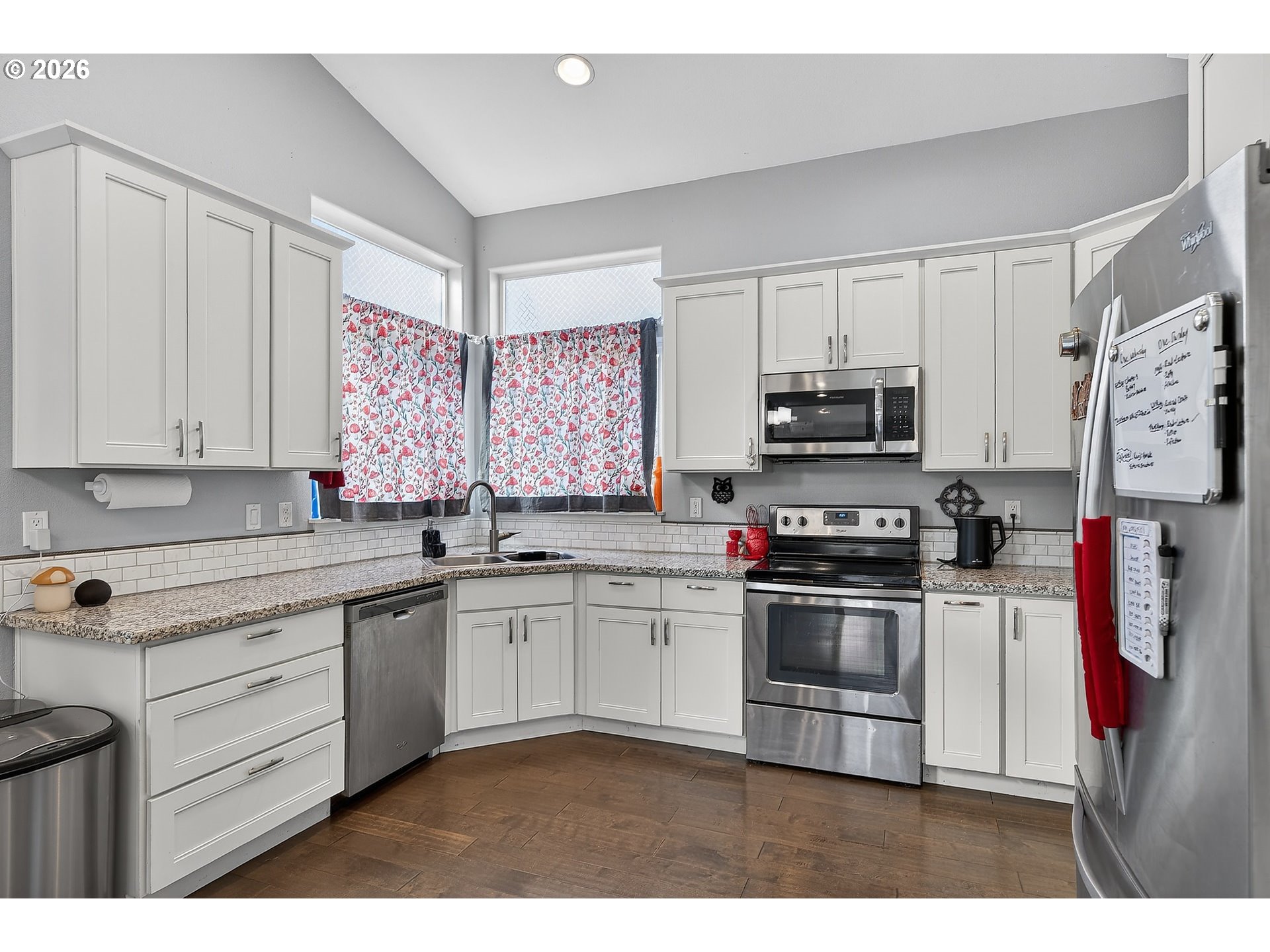 EngineeredHardwood, Granite, Laundry, VaultedCeiling