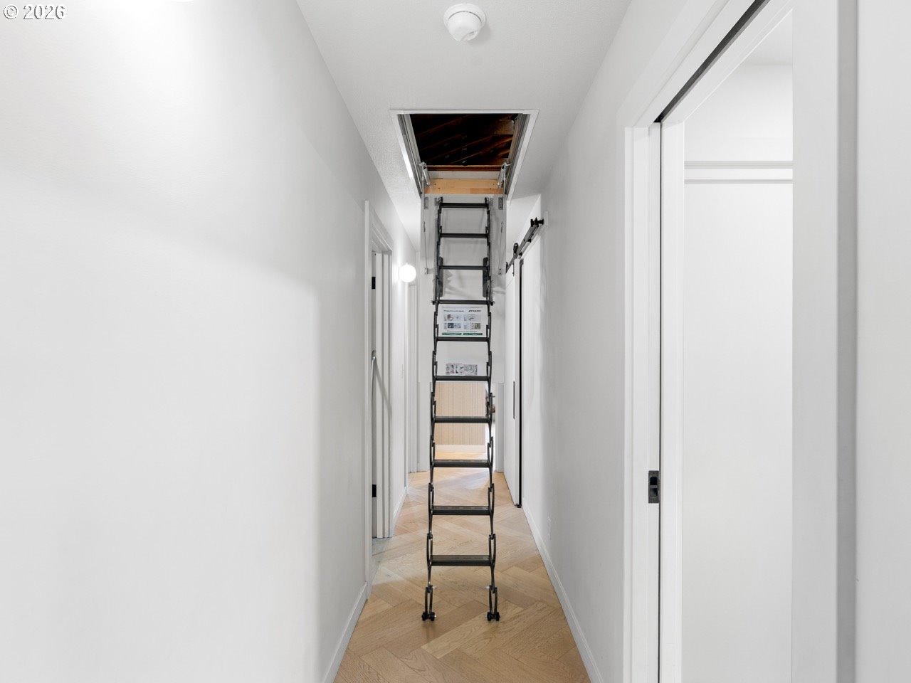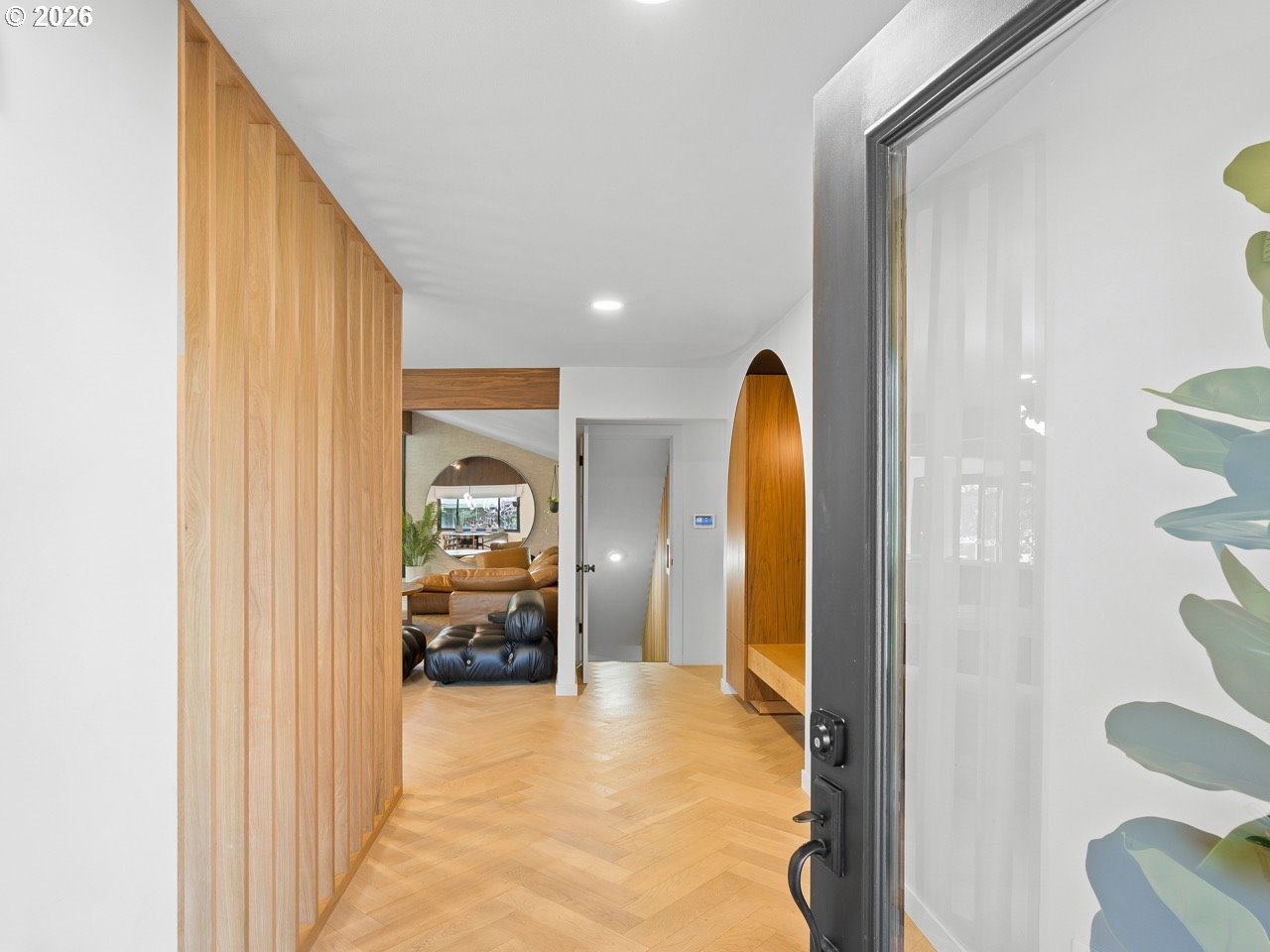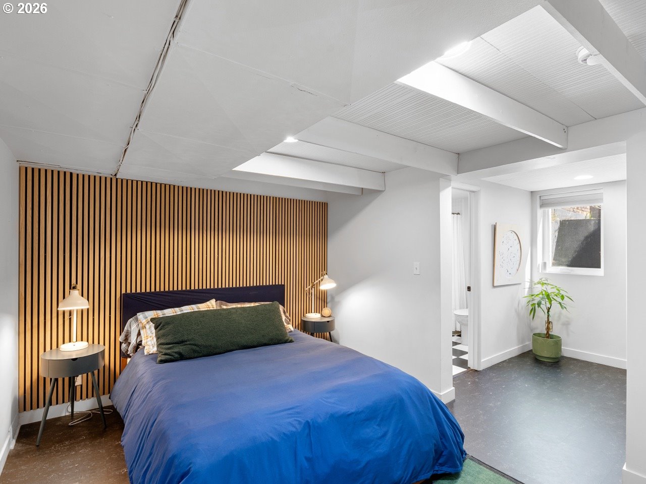 Rare opportunity to own a masterfully re-imagined Mid-Century Modern home in the prestigious Eastmoreland Neighborhood. This 2021 "to-the-studs" renovation seamlessly blends minimalist high-design with the functionality required for a modern lifestyle. No detail was overlooked, resulting in a turnkey sanctuary that feels new while honoring its architectural heritage. The open concept main floor has at its heart a true Chef’s culinary suite, featuring custom-milled walnut cabinetry, sleek quartz countertops, and a premium Jenn-Air appliance package, including a convection steam oven for the serious gourmet. The living room is centered on a custom brick fireplace, vaulted ceiling, large windows, and designer furniture that make staying home a treat instead of a convenience. The primary retreat is a masterclass in functional luxury, centered by king size bed with a wrap-around walnut walk-through closet. The spa-inspired ensuite offers a white marble surround, dual vanities, soaking tub, and a breathtaking custom circular skylight. Two generous bedrooms and a second full bath with two arched vanities and a large tub/shower complete this level. The lower level offers incredible versatility. A fully permitted, legal ADU/In-Law suite features a private exterior entrance, full kitchen, and dedicated laundry. Currently operating as a highly successful Airbnb, it averages $15,000/year in passive income, ideal for multi-generational living or offsetting your mortgage in style. For the hobbyist and At-home worker, the lower level includes a media room, a dedicated home gym and enclosed woodworking shop (partitioned in the garage), and a bedroom sized den/office with its own full bath. With an oversized garage capable of parking 2 vehicles, enough storage for all your tools and sports equipment, and nearly 50’ driveway, you will never need more space. All-new systems: Tankless water heaters, energy efficient windows, updated electrical/plumbing, and radiant flooring. No HOA.
