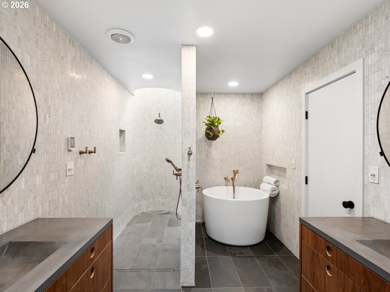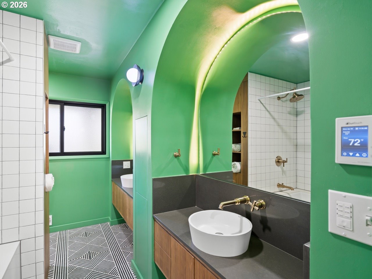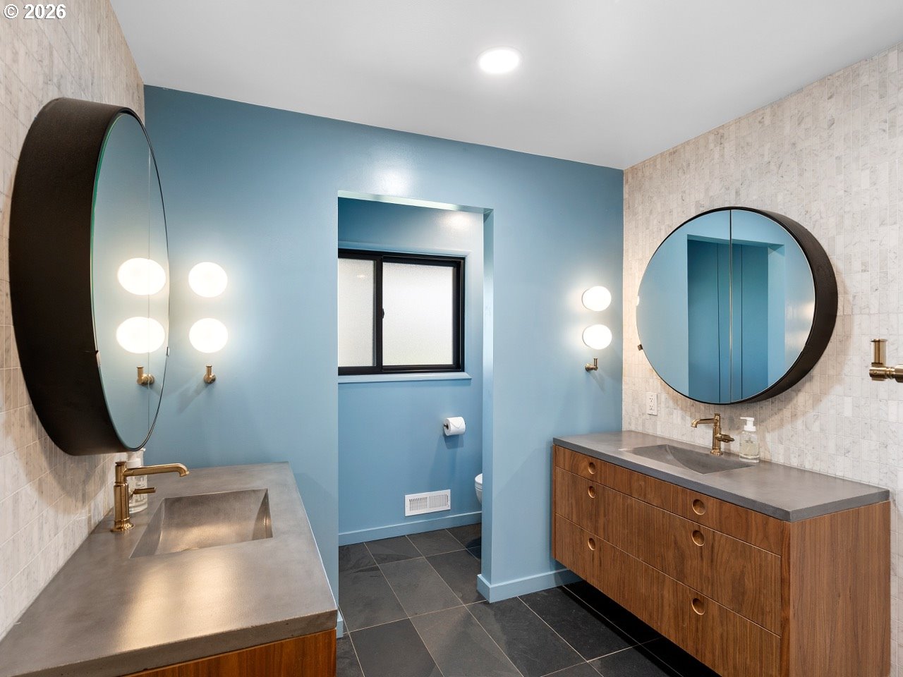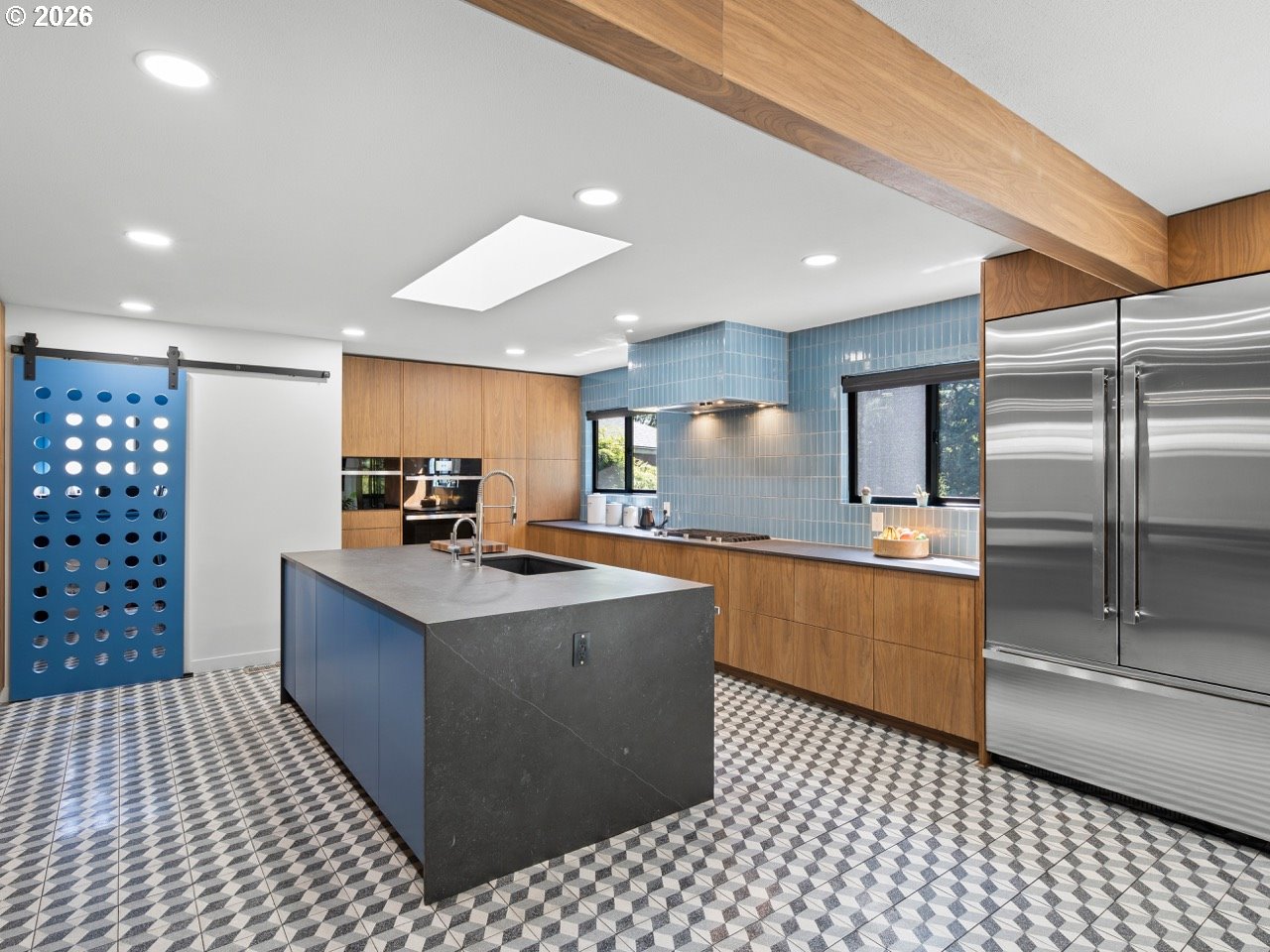 Rare opportunity to own a masterfully re-imagined Mid-Century Modern home in the prestigious Eastmoreland Neighborhood. This 2021 "to-the-studs" renovation seamlessly blends minimalist high-design with the functionality required for a modern lifestyle. No detail was overlooked, resulting in a turnkey sanctuary that feels new while honoring its architectural heritage. The open concept main floor has at its heart a true Chef’s culinary suite, featuring custom-milled walnut cabinetry, sleek quartz countertops, and a premium Jenn-Air appliance package, including a convection steam oven for the serious gourmet. The living room is centered on a custom brick fireplace, vaulted ceiling, large windows, and designer furniture that make staying home a treat instead of a convenience. The primary retreat is a masterclass in functional luxury, centered by king size bed with a wrap-around walnut walk-through closet. The spa-inspired ensuite offers a white marble surround, dual vanities, soaking tub, and a breathtaking custom circular skylight. Two generous bedrooms and a second full bath with two arched vanities and a large tub/shower complete this level. The lower level offers incredible versatility. A fully permitted, legal ADU/In-Law suite features a private exterior entrance, full kitchen, and dedicated laundry. Currently operating as a highly successful Airbnb, it averages $15,000/year in passive income, ideal for multi-generational living or offsetting your mortgage in style. For the hobbyist and At-home worker, the lower level includes a media room, a dedicated home gym and enclosed woodworking shop (partitioned in the garage), and a bedroom sized den/office with its own full bath. With an oversized garage capable of parking 2 vehicles, enough storage for all your tools and sports equipment, and nearly 50’ driveway, you will never need more space. All-new systems: Tankless water heaters, energy efficient windows, updated electrical/plumbing, and radiant flooring. No HOA.