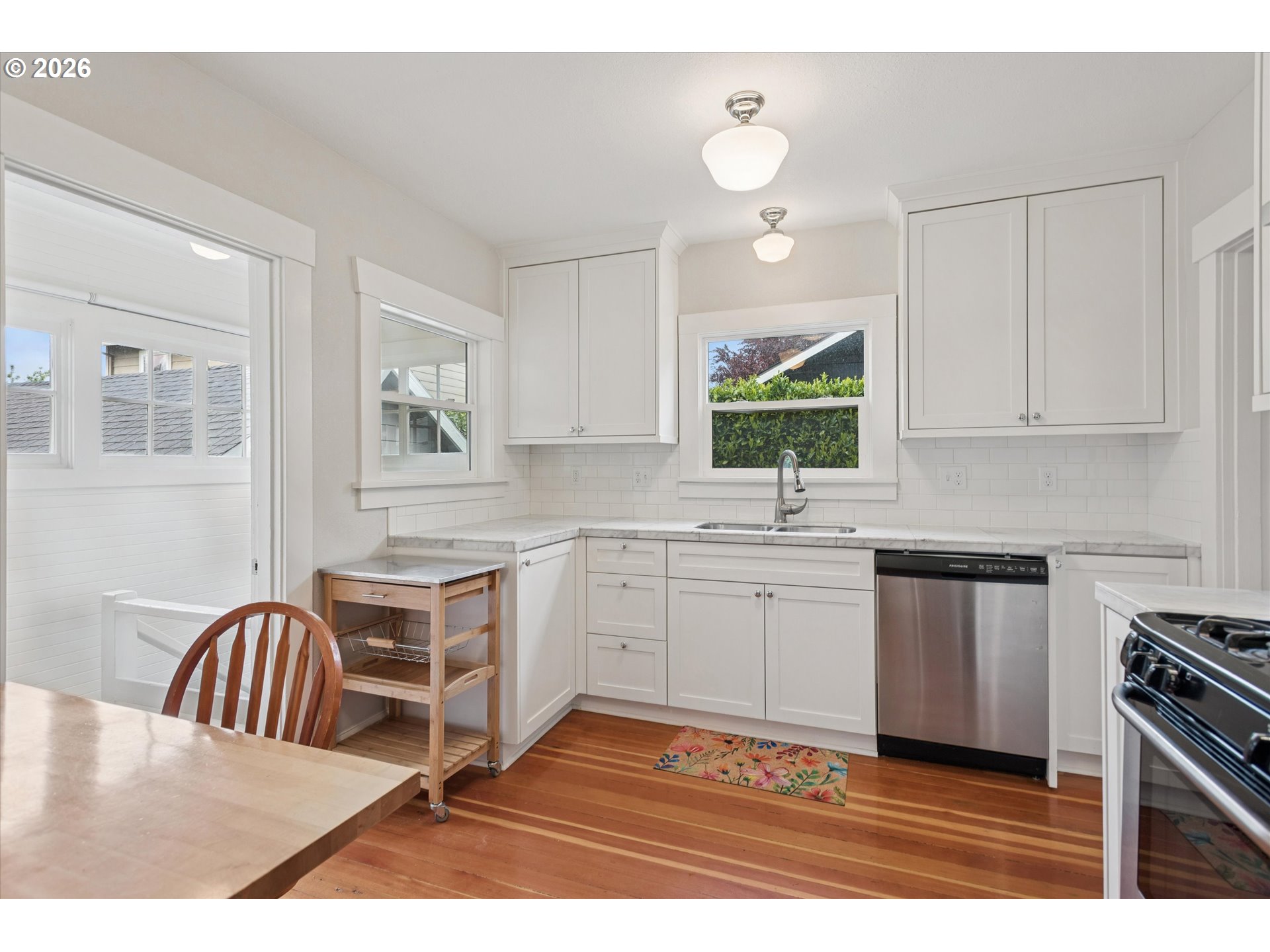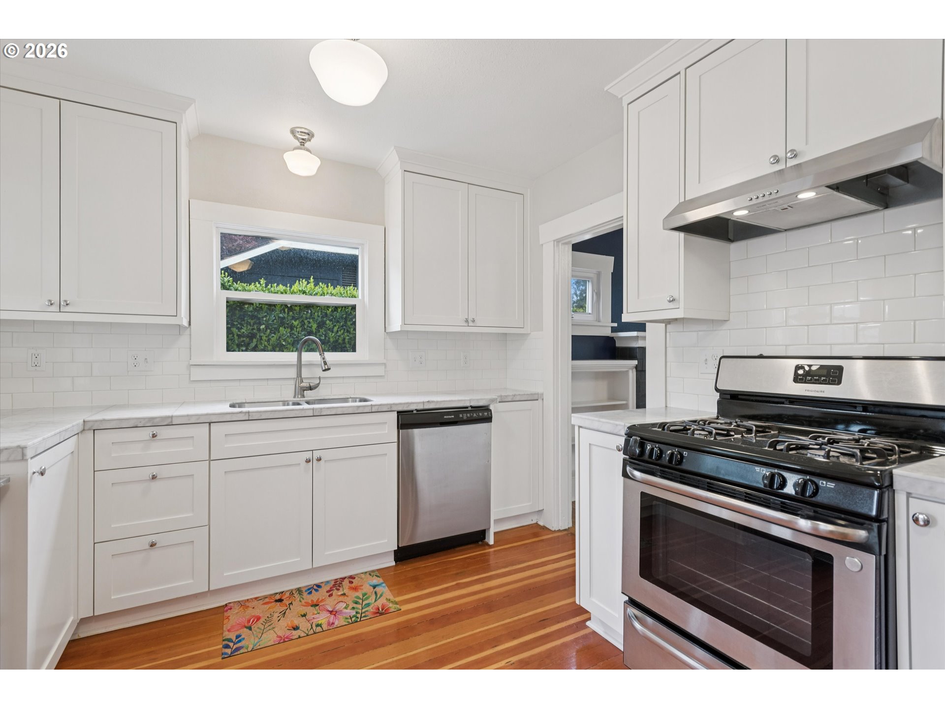 Fantastic updated bungalow with fully finished basement close to everything! Walk across the street to Trader Joe's, within minutes to Reed College, Woodstock, and all the other excellent amenities in the area. Beautiful hardwood floors through the main level. Living room features cozy fireplace and built-in features. Light and bright kitchen with stainless steel appliances, tile backsplash, and eating area. Main level offers two bedrooms and excellent Jack and Jill style full bathroom between. Convenient side entrance doubles as mud room and access to the large finished basement. Lower level has central utility room and two additional bedrooms and a half bath. Head outside to enjoy the large fenced yard from the covered Trex deck, watch the neighborhood go by from the front covered porch. New A/C, roof and furnace about 10 years old. Updated plumbing to PEX, updated electrical, updated double pane vinyl windows, sewer line replaced in 2017, radon system installed in 2018, CAT5 network cable ran to bedrooms/living room on main level. Nice detached 1-car garage. Don't miss this one, an absolute must see!