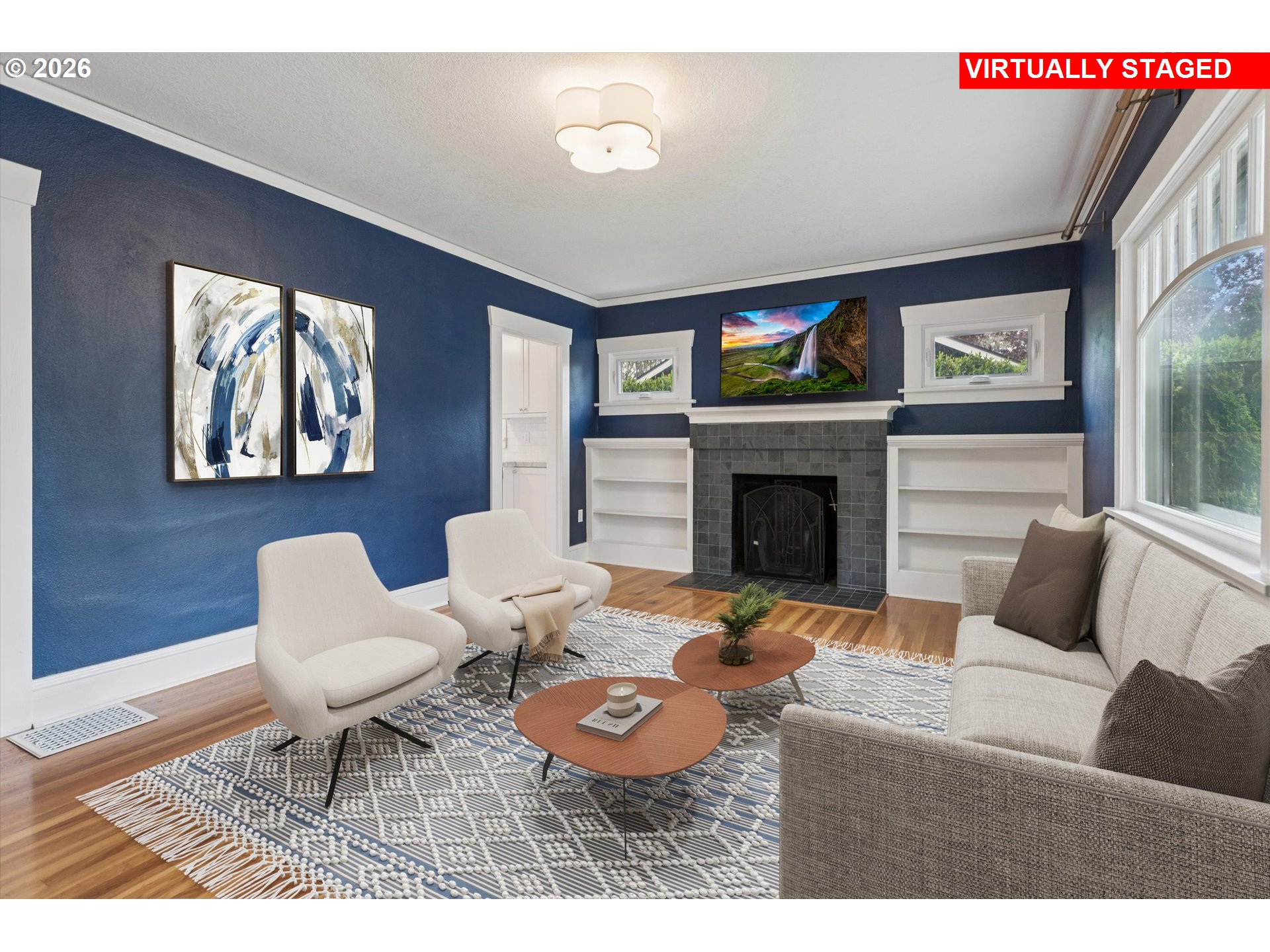 BuiltinFeatures, Fireplace, HardwoodFloors
